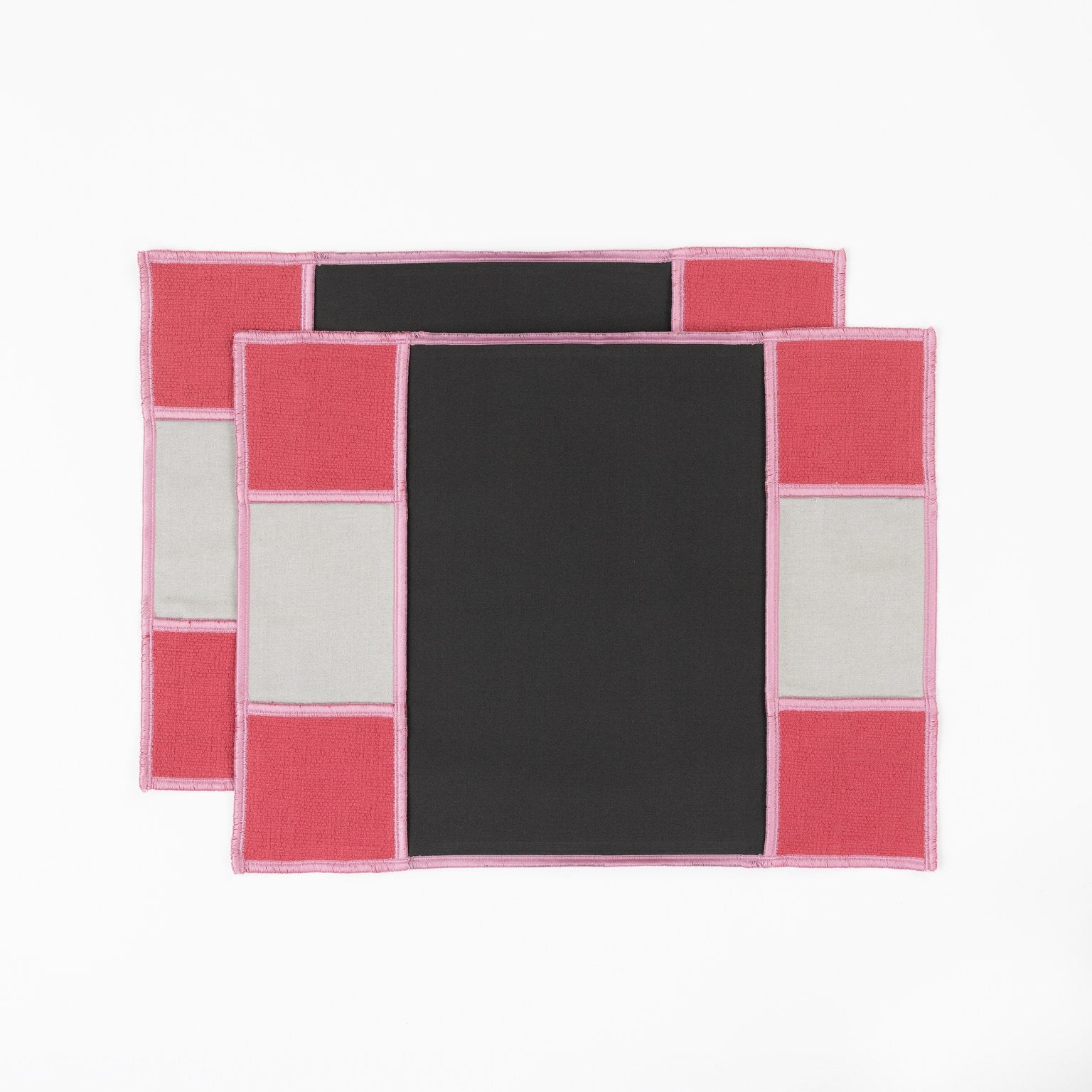 This placemat is made from discarded, yet premium quality cotton upholstery fabric. Edges and highlight seams are finished beautifully with a rose pink overlock yarn.