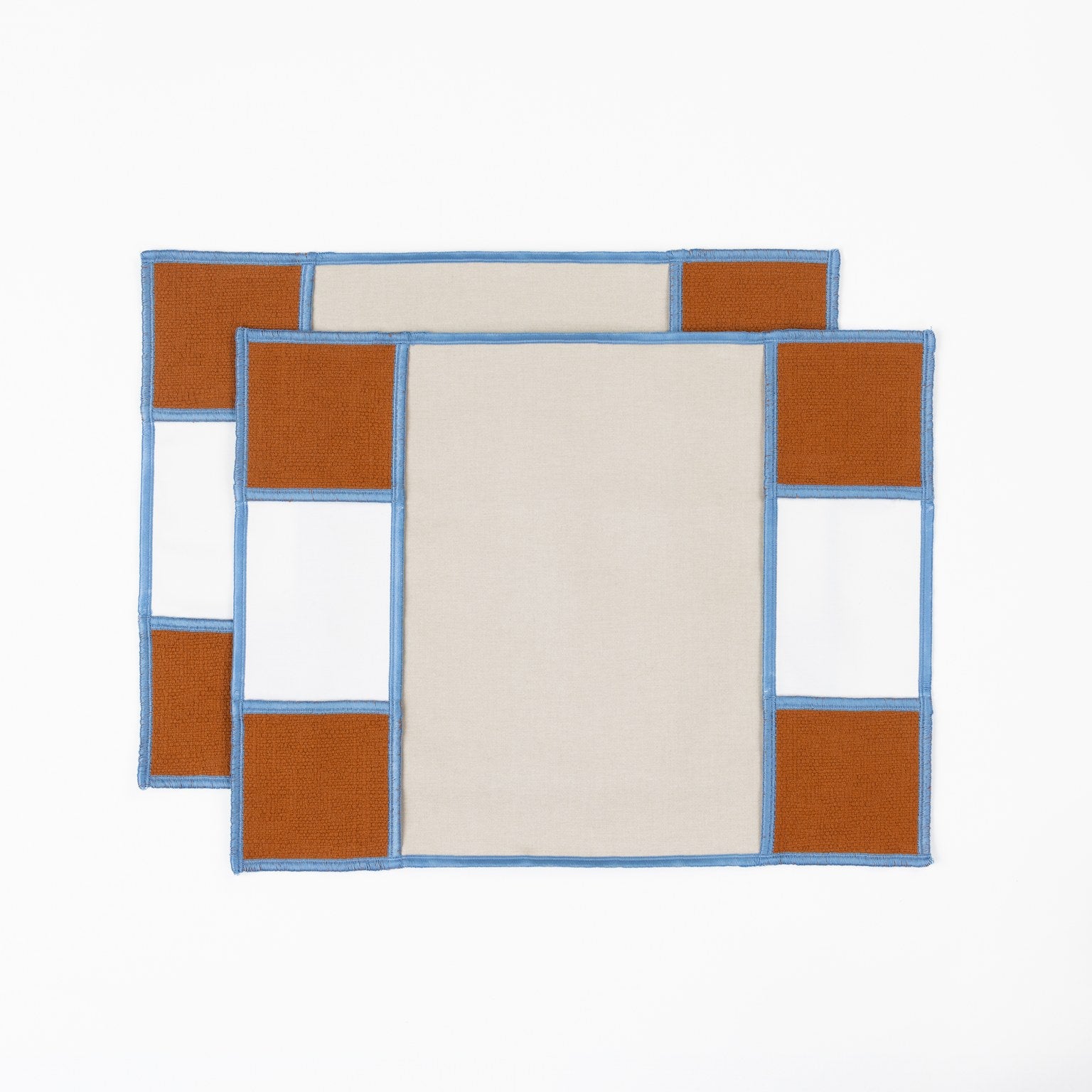 This placemat is made from discarded, yet premium quality cotton upholstery fabric. Edges and highlight seams are finished beautifully with a sky blue overlock yarn.