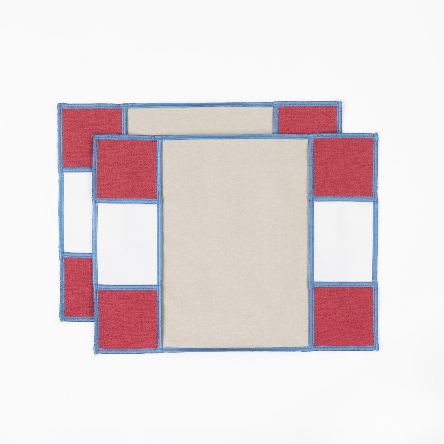 This placemat is made from discarded, yet premium quality cotton upholstery fabric. Edges and highlight seams are finished beautifully with a sky blue overlock yarn.